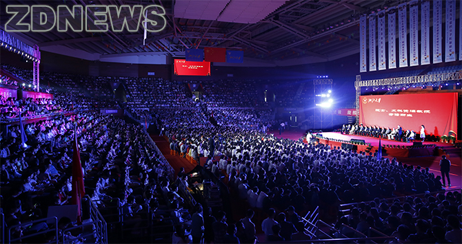在振奋人心的音乐声中,主席台师长为新生代表佩戴校徽,六千余名新生也一同郑重地将校徽佩戴于胸前,肩负起作为浙大人的职责和使命。