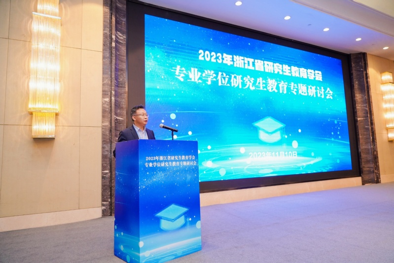 为深入贯彻落实党的二十大精神、习近平总书记关于研究生教育的重要论述和指示精神,全面总结凝练研究生教学成果典型经验,主动谋划产教融合培养模式改革,11月10日,由浙江省研究生教育学会主办,浙江理工大学承办的2023年浙江省研究生教育学会专业学位研究生教育专题研讨会在杭州顺利举行。浙江省教育厅二级巡视员、高教处处长、省学位办主任吕华,高教处二级调研员吴振辉出席本次研讨会,省内39家研究生培养单位的研究生院(处)负责人和研究生教育管理人员等120余人参加了本次研讨会。浙江理工大学郭玉海副校长为本次研讨会致欢迎词。